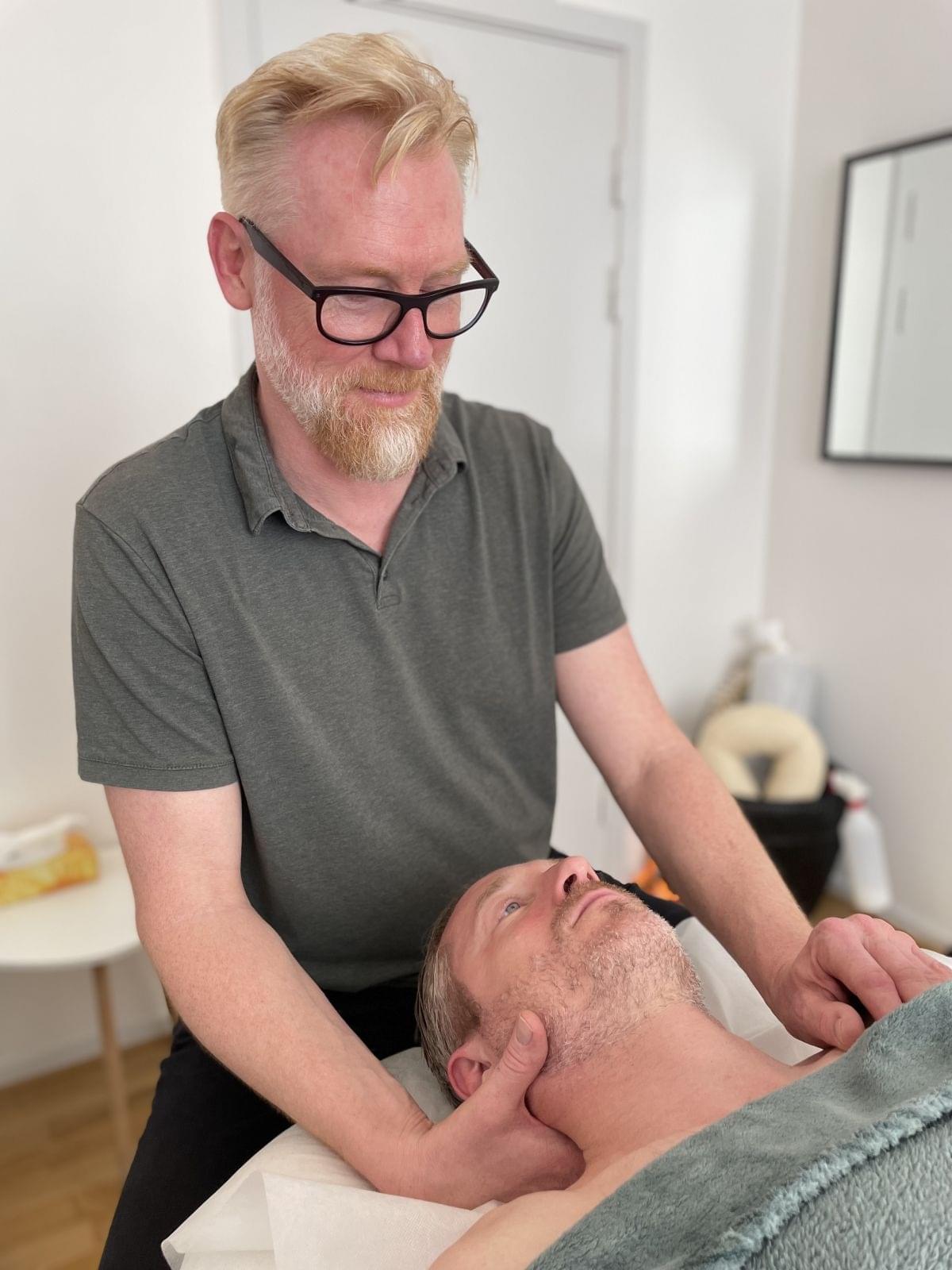 Sessionen starter med en rolig samtale om, hvordan du har det, og hvad du gerne vil have hjælp til.